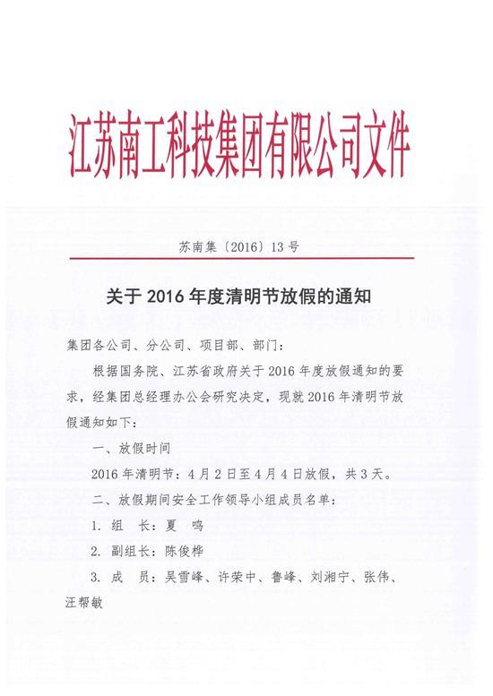 关于2016年度清明节放假的通知