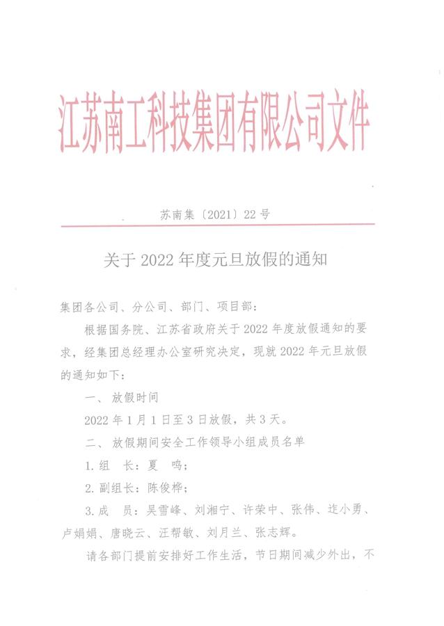 您的位置:集团首页 >> 新闻中心 >> 集团公告 >> 关于2022年度元旦放假的通知