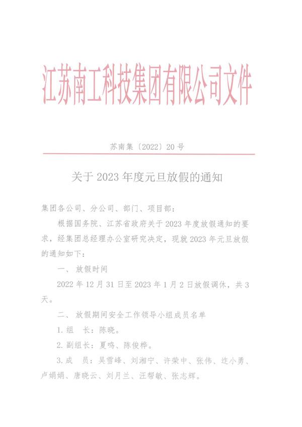 您的位置:集团首页 >> 新闻中心 >> 集团公告 >> 关于2023年度元旦放假的通知