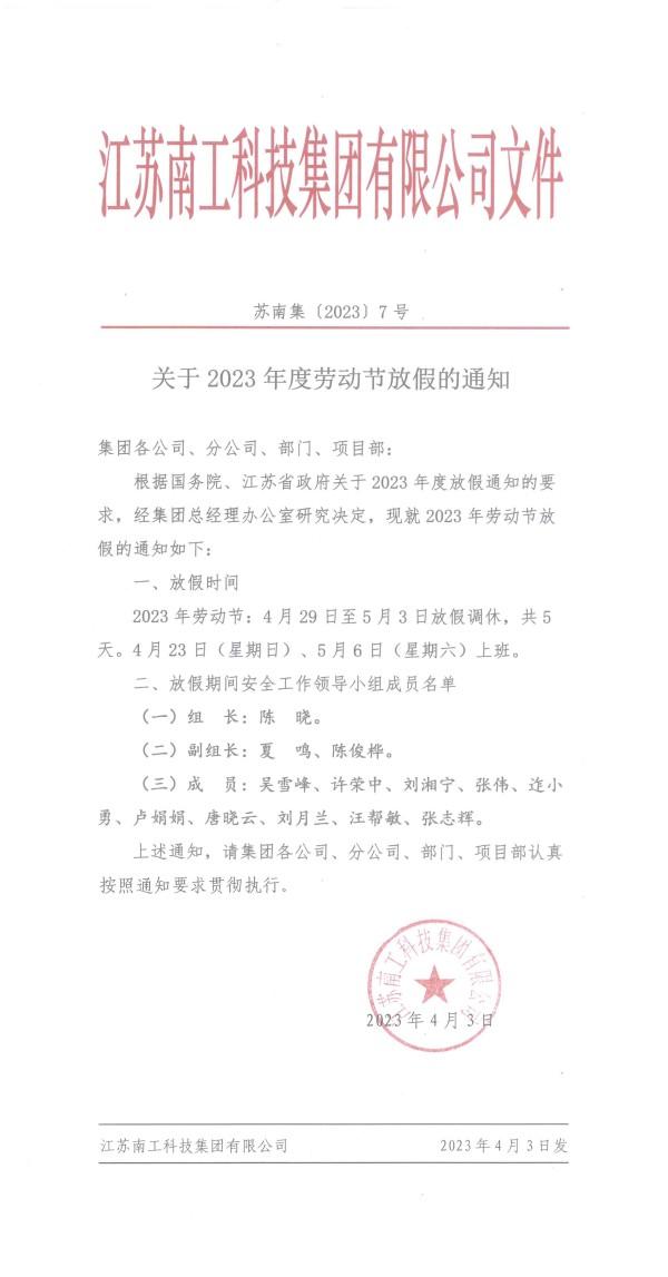 您的位置:集团首页 >> 新闻中心 >> 集团公告 >> 关于2023年度劳动节放假的通知