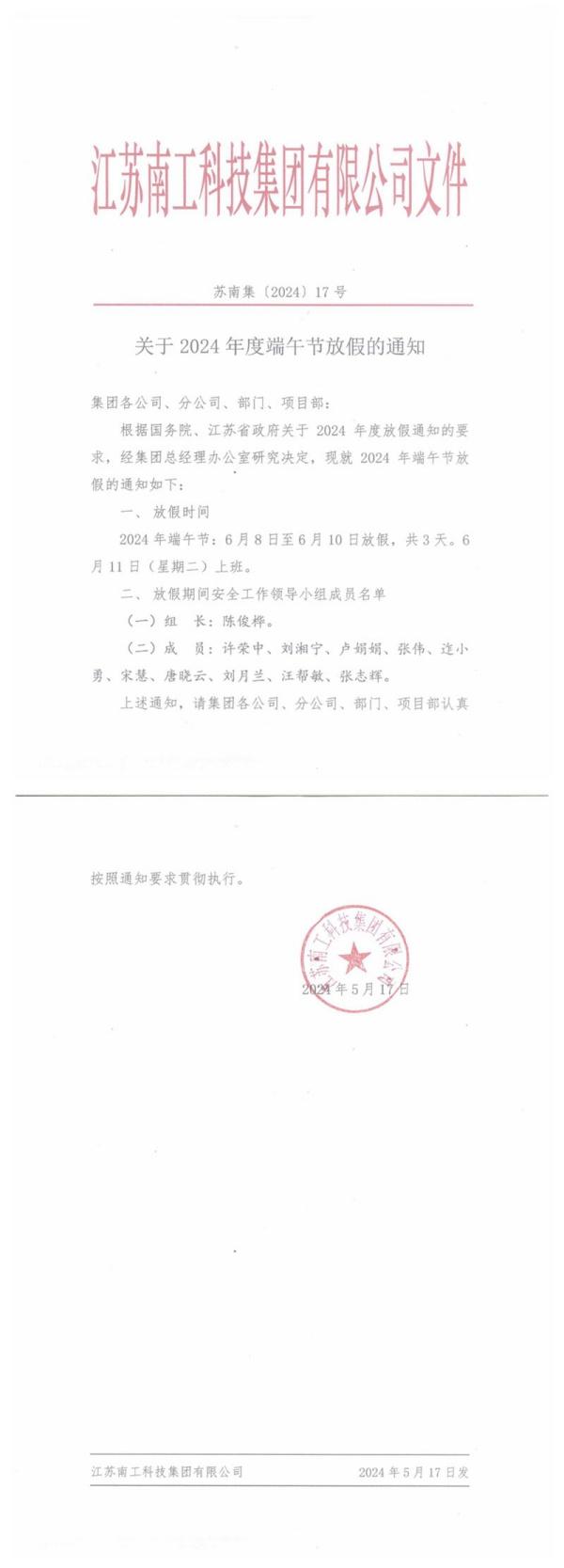您的位置:集团首页 >> 新闻中心 >> 集团公告 >> 关于2024年度端午节放假的通知