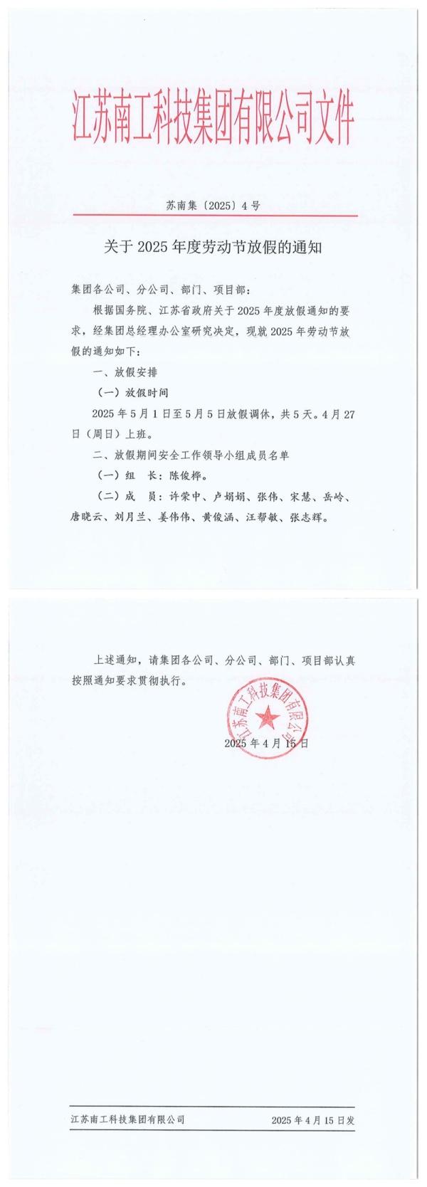 您的位置:集团首页 >> 新闻中心 >> 集团公告 >> 关于2025年度劳动节放假的通知