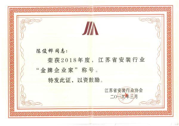金牌企业家证书