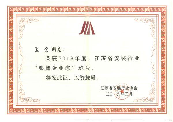 银牌企业家证书