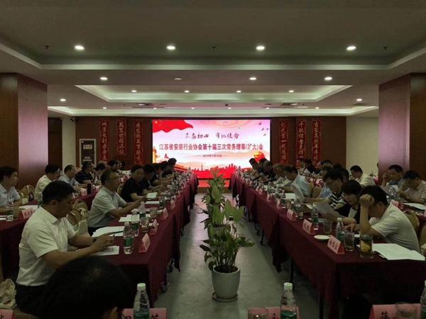 2019年7月10日,江苏省安装行业协会第十届三次常务理事会在南京召开。参加会议的有江苏省安装行业协会会长蒋东良、驻会副会长邹金林,副会长殷炜东、朱正、丁建华、陈晓、赵杏英、黄勇、梁勇、邓树清、荣元良、韩秋宏、张彬、徐子根、季方才、施红平,会长助理顾建生,协会监事祖咏,秘书长吴辉、副秘书长席天阳。协会智能化与消防工程分会常务副会长吴星红、副会长刘昌华、陈曦、顾永松、徐雪宏、陈俊桦及常务理事等60多人。