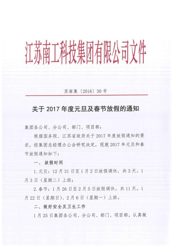 关于2017年度元旦及春节的放假通知