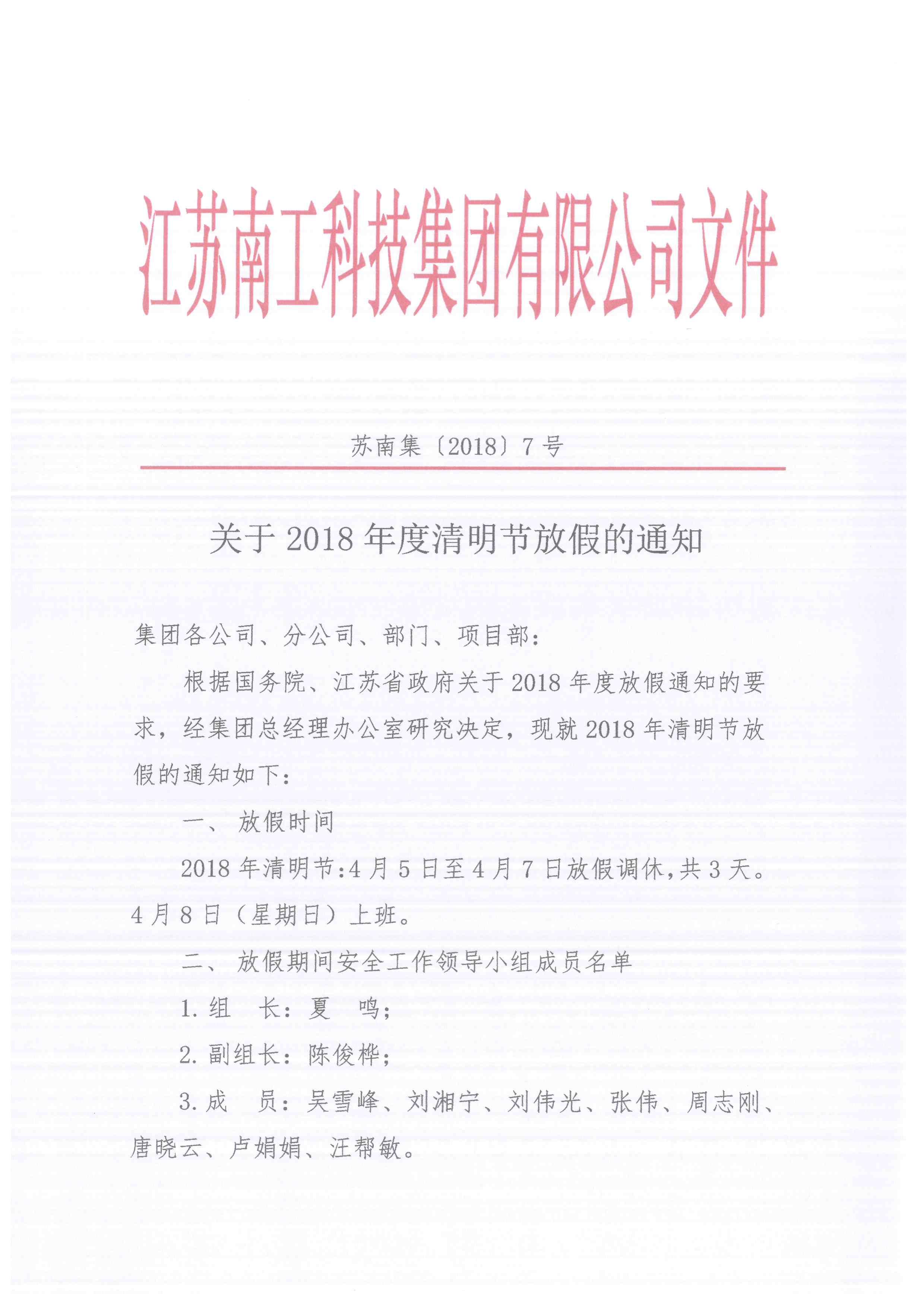 您的位置:集团首页 >> 新闻中心 >> 集团公告 >> 关于2018年度清明节放假的通知
