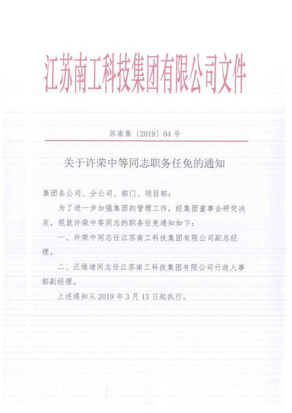 您的位置:集团首页 >> 新闻中心 >> 集团公告 >> 关于许荣中等同志职务任免的通知