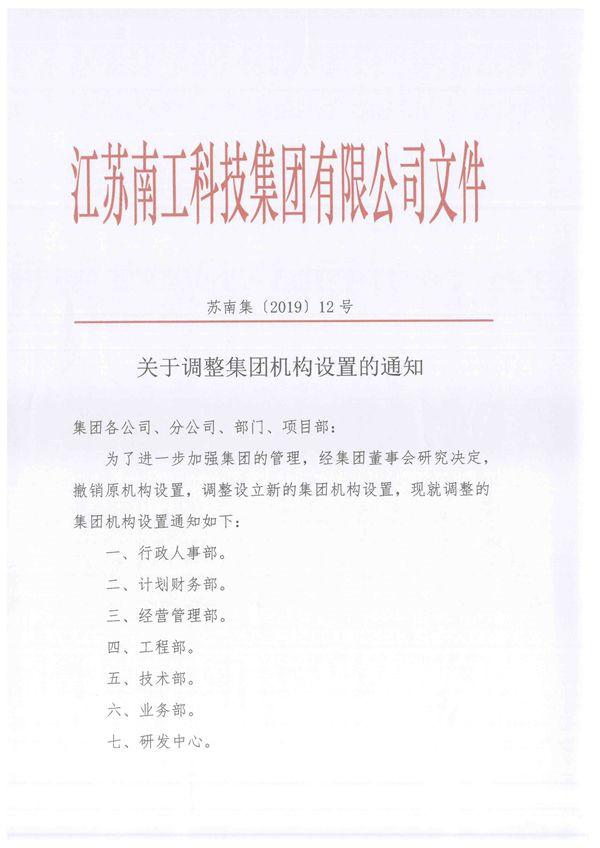 关于调整集团机构设置的通知