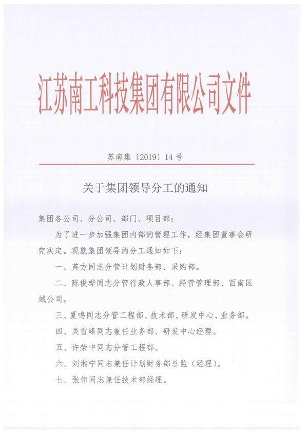 关于集团领导分工的通知