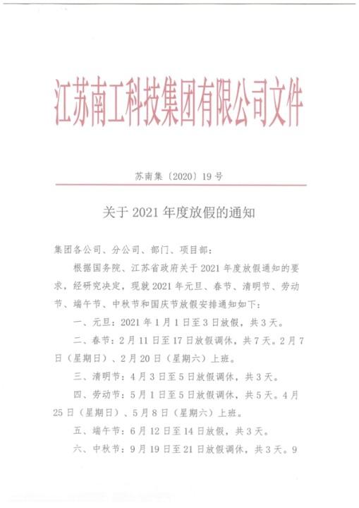 您的位置:集团首页 >> 新闻中心 >> 集团公告 >> 关于2021年度放假的通知