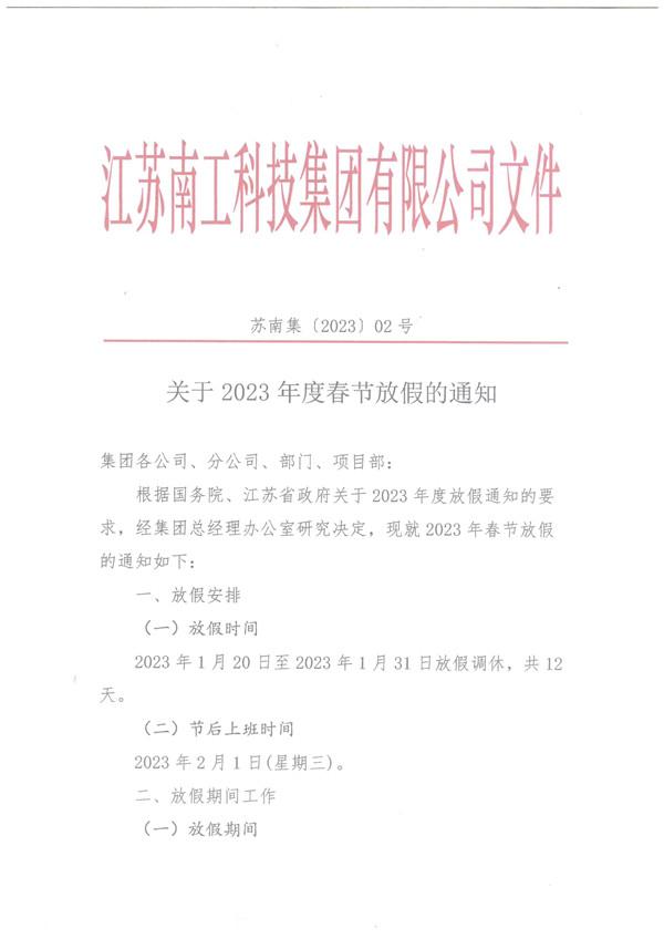 关于2023年度春节放假的通知