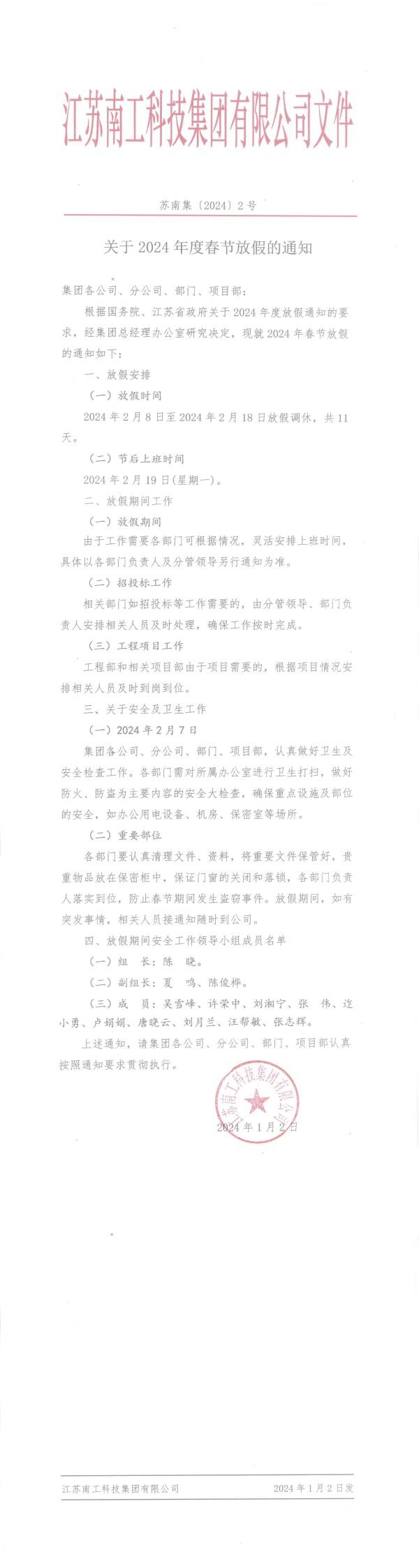 您的位置:集团首页 >> 新闻中心 >> 集团公告 >> 关于2024年度春节放假的通知
