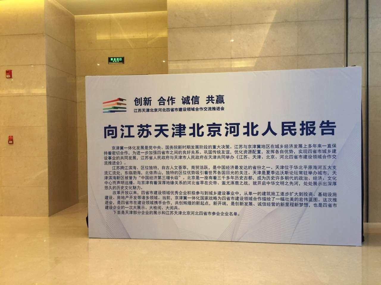 2015618日,江苏建设领域京津冀合作推进会在天津市万丽天津宾馆会议中心隆重召开。本次合作推进会由江苏省人民政府、天津市人民政府主办,江苏省住房和城乡建设厅、天津市城乡建设委员会承办,北京市住房和城乡建设委员会、河北省住房和城乡建设厅协办。江苏k1体育科技集团有限公司作为参会企业进行了参展,集团副总经理陈俊桦参加了会议。