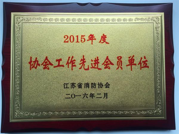 江苏k1体育科技集团等9个单位在2015年度协会工作中表现突出,受到了江苏省消防协会的表扬。被表彰为“2015年度协会工作先进会员单位”,并颁发奖匾。
