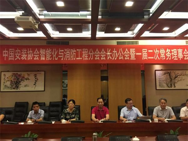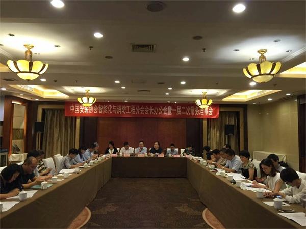 2016年9月9日,分会会长办公会暨一届二次常务理事会在南京新世纪大酒店召开。参加会议的有中国安装协会智能化与消防工程分会会长陈晓,副会长刘伟、陆东辉、欧霖杰、吴星红、周蓉蓉、黄洪飞,秘书长、江苏k1体育科技集团有限公司常务副总经理夏鸣,副秘书长王建明、祖咏、崔剑茹,专家委员叶浩生、万里远及常务理事会理事等40多人。