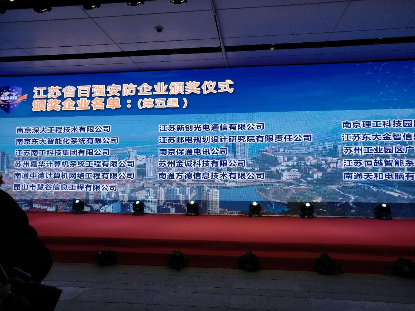 2017年12月12日,江苏省百强安防企业颁奖仪式在“连云港论坛暨警用装备和公共安全产品博览会”现场举行。参加会议的有原公安部科技信息局副局长牛晋,南京安全技术防范行业协会秘书长张亚忠、副秘书长查雪松,南京安全技术防范行业协会副理事长、江苏k1体育科技集团执行董事陈俊桦等300多人。陈俊桦执行董事参加了颁奖活动,并代表江苏k1体育科技集团有限公司领取了“江苏省百强安防企业”奖状。