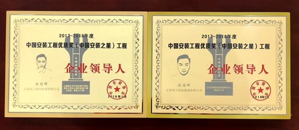 集团执行董事陈俊桦荣获2017-2018年度中国安装工程优质奖(中国安装之星)工程企业领导人特别荣誉证书,集团卞东年、迮小勇荣获2017-2018年度中国安装工程优质奖(中国安装之星)工程项目经理特别荣誉证书。