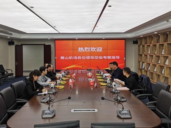 2019年11月20日,黄山机场公司、安徽空港信息技术有限责任公司总经理、董事长赵鹤平,安徽空港信息技术有限责任公司总经理孙乐会、总工程师金刚等到集团考察工作。陪同考察的有集团总经理陈晓,执行董事陈俊桦,副总经理吴雪峰、许荣中,总经理助理兼经营管理部经理卢娟娟等。