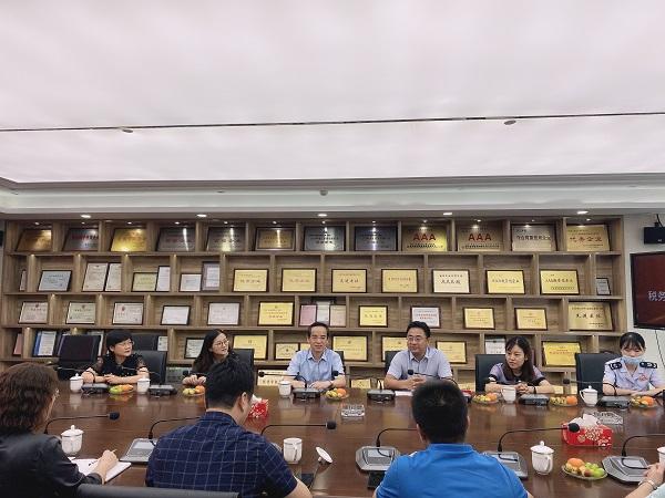 2020年9月2日,南京市税务局宗明副处长、唐恬副主任;建邺税务局贾振祥副局长、曾睿科长、叶桂玲科长、张薇主任到集团考察指导工作,并为集团副经理兼财务总监刘湘宁颁发《南京市营商环境特约监督员》聘书。集团常务副总经理夏鸣、执行董事陈俊桦、副总经理兼财务总监刘湘宁、财务部副经理张城及胡东林等人参加了考察。