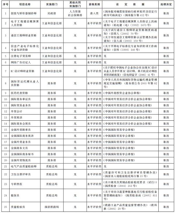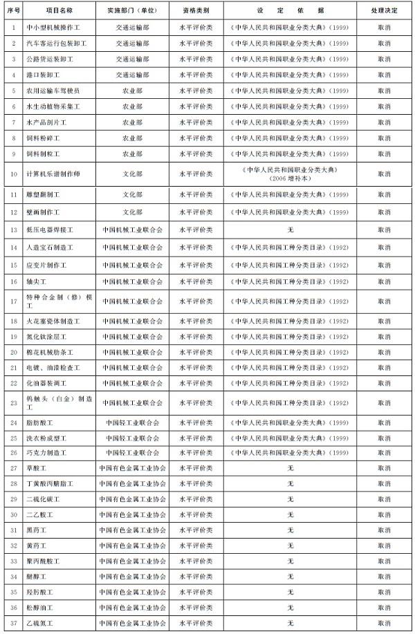 务院部门和全国性行业协会、学会自行设置的水平评价类职业资格一律取消;有