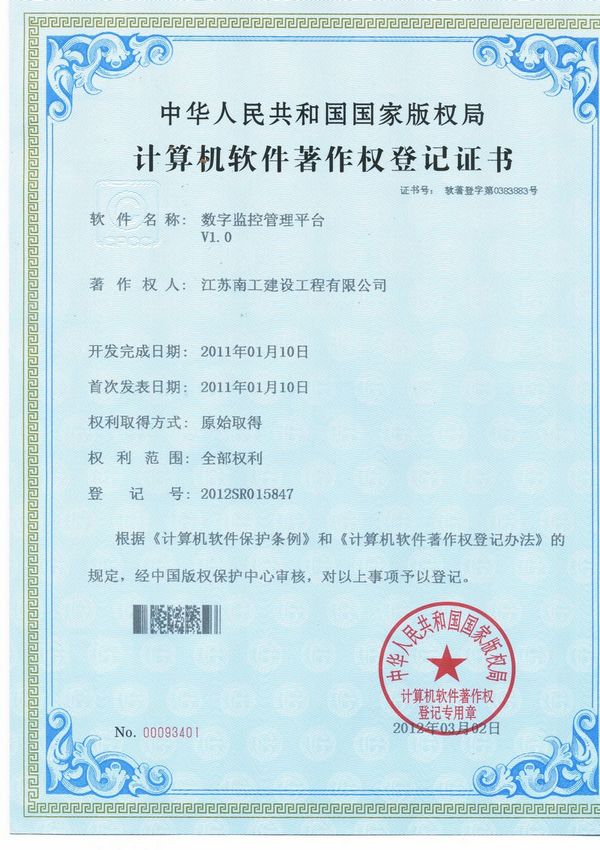 数字监控管理平台证书