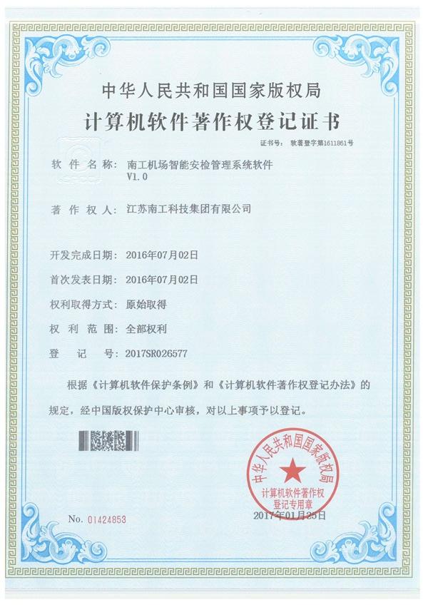 k1体育机场智能安检管理系统软件证书
