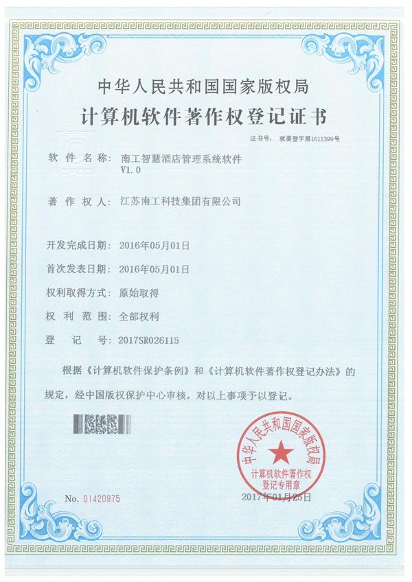 k1体育智慧酒店管理系统软件证书